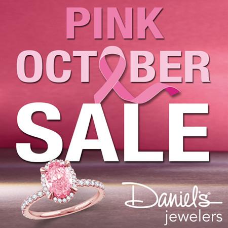 Daniel's Jewelers Pink October Sale Event is happening in-stores now! Save up to 80% OFF & Get FREE GIFTS just for trying jewelry on, no purchase necessary. Plus, a portion of all sales will be donated to a Breast Cancer Charitable Organization. Everyone is 100% approved for in-house financing. See store for details.