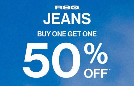 Hurry in and buy one, get one 50% off RSQ jeans in store.